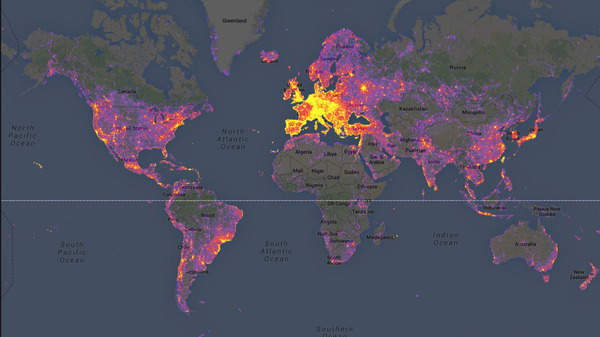 Mapa najczęściej fotografowanych miejsc na świecie.