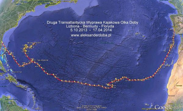 Lizbona – Bermudy – Floryda to trasa Olka Doby którą pokonał jako pierwszy człowiek na świecie.