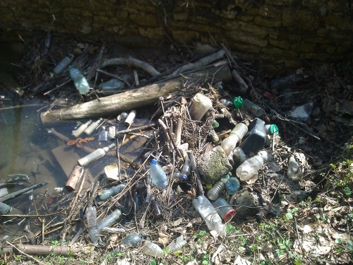 mała dokumentacja PRZED i PO z dzisiejszego sprzątania z Raffeem (śmy się godnie musieli nagimnastykować, by wydobyć syćkie „skarby” z tego kąta tj. zaułka Prądnika, kilkanaście metrów od szlaku niebieskiego)