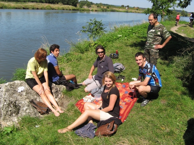Spotkaliśmy się o 11:00 koło Balonu przy Rodzie Grunwaldzkim. Po ustaleniu trasy i napompowaniu rowerów wyruszyliśmy w stronę Tyńca. Jechaliśmy głównie drogą rowerową wzdłuż Wisły. Albin wyżywał się artystycznie robiąc nam co kawałek zdjęcia w ruchu jadąc rowerem. Gdy dotarliśmy na miejsce i znaleźli odpowienie miejsce wśród skałek, rozpoczęliśmy nasz piknik. Karolina użyczyła nam swojego kocyka piknikowego i poczęstowała pysznym ciastem i kanapkami.Nie obyło się bez ciekawych epizodów. Pan na skuterze próbując zawrócić w okolicy naszej „miejscówki” wjechał w nasze rowery, uszkadzając błotnik w rowerze Karoliny. Na szczęście nic poważnego się nie stało i gdy wypoczęliśmy udaliśmy się do Opactwa Benedyktynów. Tam zatrzymaliśmy się na chwilę w celu zrobienia zdjęć i zwiedzenia obiektu.