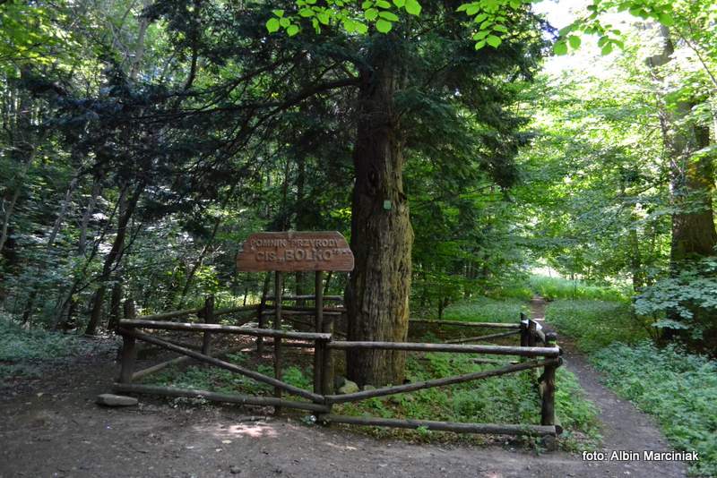 Idąc dalej wzdłuż rzeczki, dochodzi się do wiekowego Cisu Bolko skąd wiedzie ścieżka (niebieski szlak) na tyły Zamku Książ .