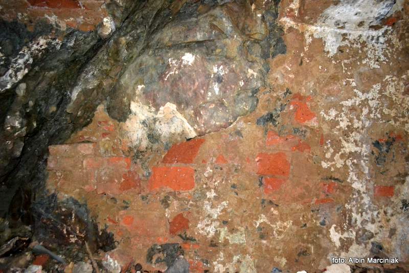 Tutaj także widnieje zamurowane wejście w głąb wzgórza.