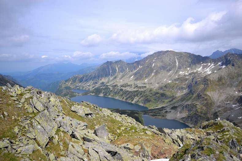 widok na 5 Stawów z podejścia na Walentkowy Wierch