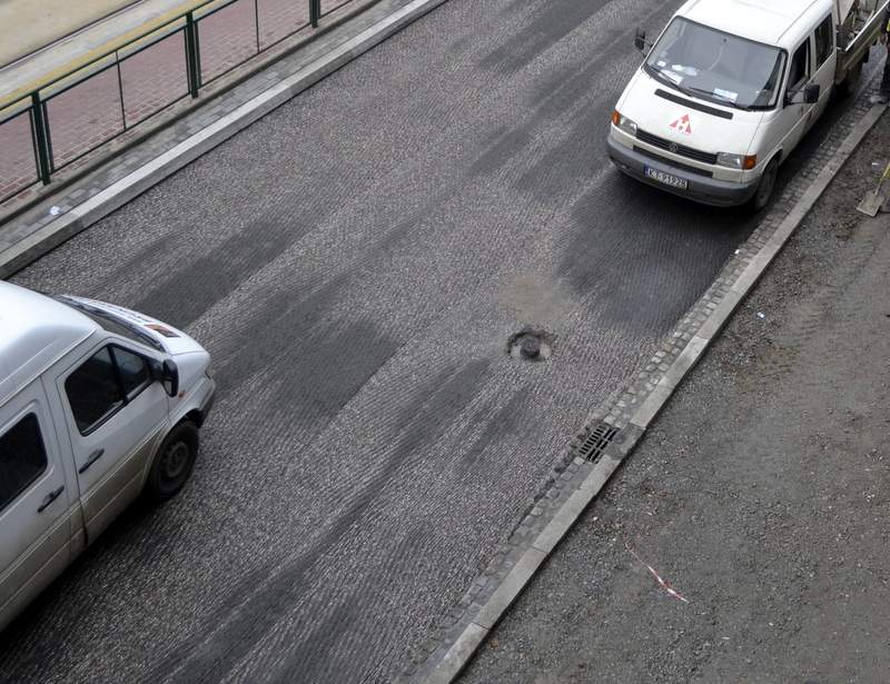 Ekipa zerwała nową nawierzchnię od Ronda Mogilskiego aż do Policji…