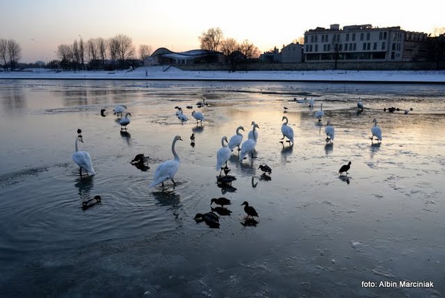 Kiedy całkiem niedawno temperatury wzrosły nagle do plus kilkunastu stopni, nikt nie podejrzewał zapewne, że czeka nas aż tak potężne ochłodzenie. Od kilku dni na termometrach mamy rano -15′C. Niskie temperatury zimą nie są co prawda niczym niezwykłym, i też można udać się na miły spacer z pożytkiem dla siebie i innych stworzeń, np. dla łabędzi, które nie odleciały, tak jak te w Krakowie i ciężko im teraz z jedzeniem. Wychodząc zabierzmy ze sobą chleb czy bułkę. Jednak jeżeli chcemy je karmić, róbmy to solidnie, by pomagać, a nie szkodzić. Jeżeli ktoś karmi łabędzie w danym miejscu, powinien systematycznie i konsekwentnie robić to przez całą zimę, szczególnie w mroźne dni…
