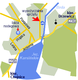 Także tutaj wypożyczalnia sprzętu pływającego i rowerów górskich.