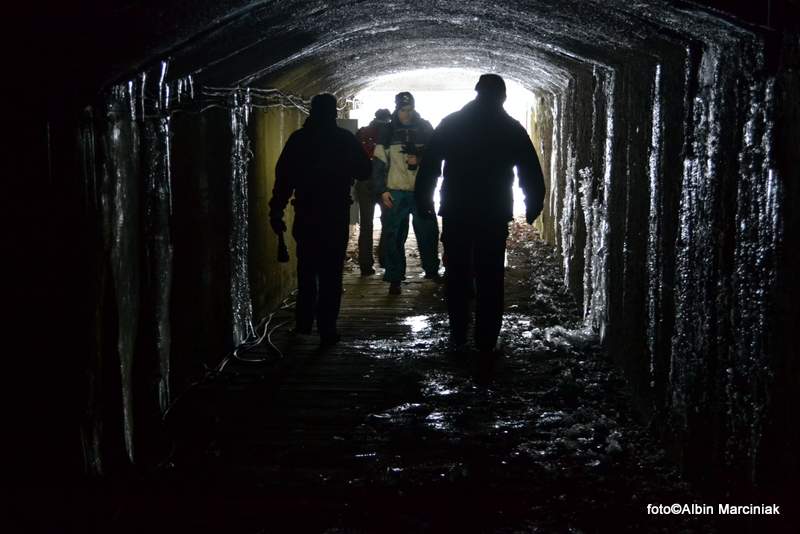 Obok kopalni jest nieczynny kilometrowy tunel kolejowy z gigantycznymi soplamiWracając, udało nam się jeszcze wejść do otwartej niedawno sztolni „Arado” w Kamiennej Górze
