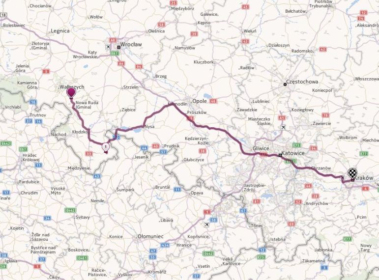 z Walimia do Krakowa przez Kletno ok 350 km