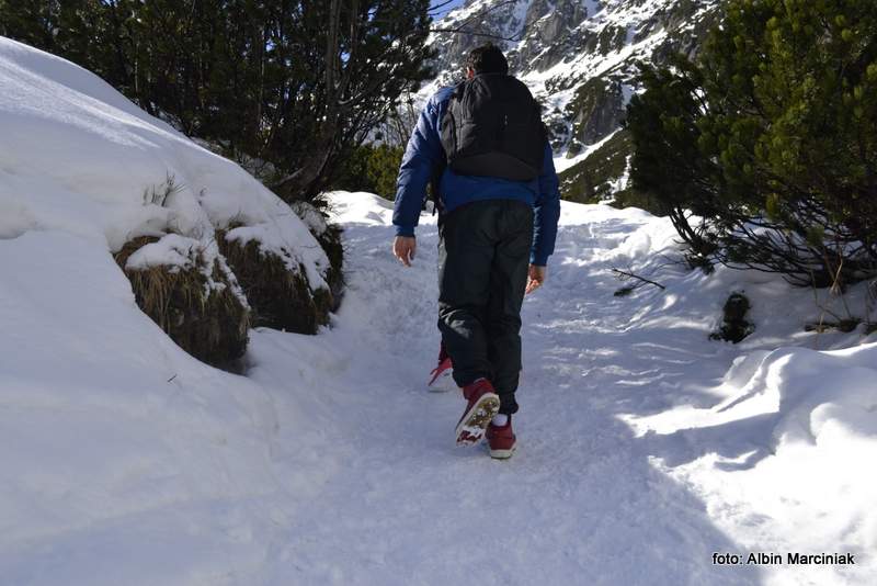 Dolina Roztoki, 8 marca czyli zima, idzie dwoje ludzi w obuwiu że ręce opadają (ona w tenisówkach )
