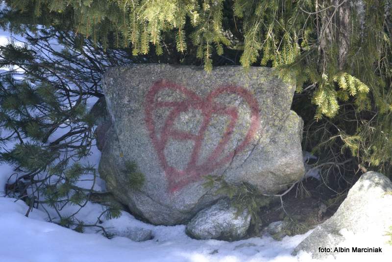 Po słynnej akcji graficiarzy na drodze do Morskiego Oka, winny chyba nie bardzo został ukarany skoro nie odstraszyło to kolejnych kretynów naśladowców. Kolejne napisy pojawiły się na kamieniach przy końcowym odcinku czarnego szlaku dochodzącego do schroniska w Pięciu Stawach i jeden na szlaku prowadzącym z Hali Gąsienicowej nad Czarny Staw Gąsienicowy. Przypuszczam że na terenie Tatr takich objawów pustogłowia nieudacznika życiowego, jest znacznie więcej.