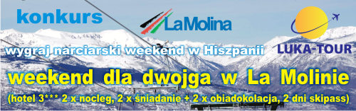 weekend dla dwojga w La Molinie (hotel 3*** 2 x nocleg, 2 x śniadanie i 2 x obiadokolacja, 2 dni skipass)[/b]Konkurs jest banalnie prosty