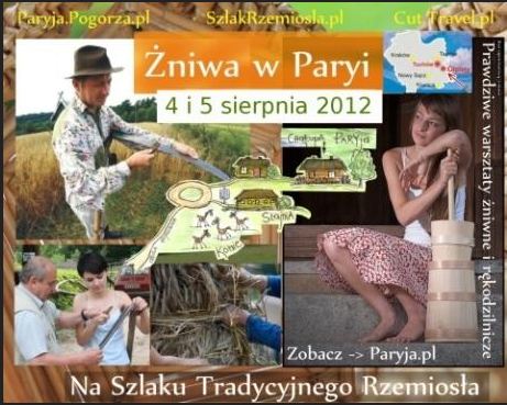 Fundacja NADwyraz i Szlak Tradycyjnego Rzemiosła http://www.szlakrzemiosla.plZobacz więcej i czytaj na stronie informacje o Żniwach 2012 na stronach http://www.paryja.pl http://www.paryja.pogorza.pl i na facebooku: http://www.facebook.com/pages/Paryja-Gospodarstwo-Agroturystyczne/226923544090841