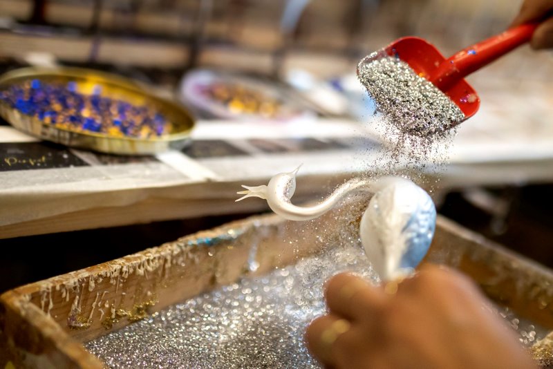 Zwiedzający mogą przyjrzeć się procesowi produkcji – dmuchaniu ze szklanych rurek, posrebrzaniu, zabarwianiu oraz cięciu pereł, a następnie montażowi. Każda perełka, zanim trafi na ozdobę, musi przejść przez przynajmniej sześć par rąk. Na gości czekają także warsztaty i sklep oferujący setki kolorowych, błyszczących cudeniek.