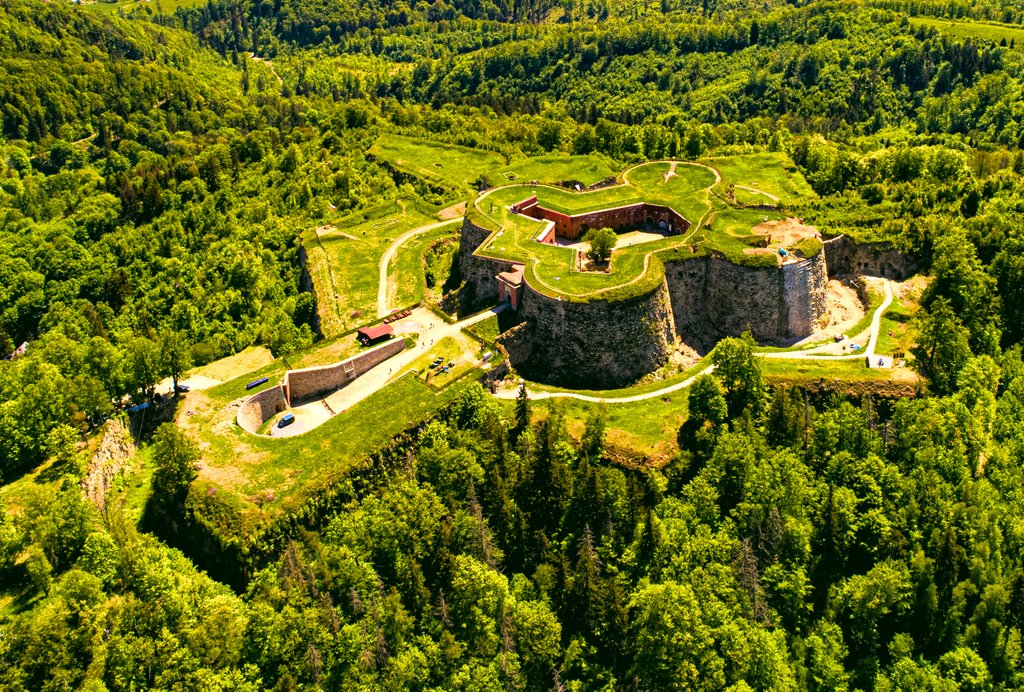 Twierdza Srebrna Gόra jest unikatowym obiektem w skali dziedzictwa kulturowego Europy i jedną z najważniejszych atrakcji Dolnego Śląska. W chwili powstania (1763-1785) należała do najnowocześniejszych tego typu fortyfikacji w Europie. Największy podziw budził i nadal budzi potężny Donjon, jeden z najciekawszych obiektόw fortyfikacji epoki nowożytnej. Jednak Twierdza Srebrna Gόra to w rzeczywistości nie jeden obiekt a cały zespół wznoszących się nad miasteczkiem fortόw. Twierdza składa się bowiem aż z sześciu fortόw i kilku bastionόw. Głόwny jej trzon tworzy zespół bastionόw z Donjonem w środku. Obiekt ten posiadał 151 pomieszczeń fortecznych (kazamat) rozmieszczonych na trzech kondygnacjach. Ogromne magazyny, studnie, zbrojownia, kaplica, więzienie, szpital, piekarnia, browar, warsztaty rzemieślnicze i prochownia czynił fort całkowicie samodzielnym i samowystarczalnym. W jego wnętrzu mieściło się 3,756 żołnierzy, olbrzymie zapasy amunicji, opału i żywności. Do obrony służyły 264 działa moździerze. W obrębie twierdzy wydrążono 9 studni, w tym najgłębsza (84m) na terenie fortu Ostróg. Rozległość tego systemu i jego lokalizacja pozwala zaliczyć twierdzę do największych gόrskich założeń obronnych Europy.