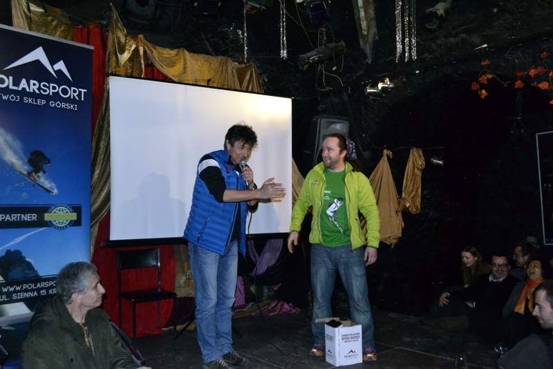 Gość specjalny (z lewej) Janusz Gołąb, który wraz z Adamem Bieleckim dokonał pierwszego zimowego wejścia na szczyt Gaszerbrum I.