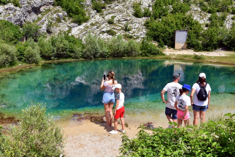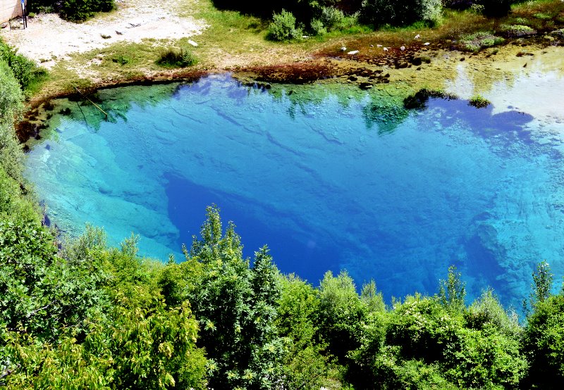 Będąc precyzyjnym to nie jedno i nie dwa a właściwie trzy źródła ma Cetna – Veliko Vrilo, Vokovića Vrilo oraz Batića Vrilo. Głównym i najważniejszym jest oczywiście błękitne jeziorko bez dna a właściwie to dotąd poznane, bo nurkom udało się zejść na głębokość 115 metrów. Taki efekt jest dla obserwatorów podziwiających ten fenomen z platformy widokowej zbudowanej na skarpie kilkanaście metrów powyżej lustra wody. Dodając do tego masyw Dinary zamykający kadr, widok jest przepiękny. Woda leniwie przetacza się płytkim strumieniem by połączyć się z inną odnogą rzeki mającej początek w Izvor Vuković (mniejsze źródło rzeki Cetina). W połowie odległości pomiędzy dwoma źródłami, znajduje się trzecie, szczelnie otoczone kępą drzew. To trzecie źródło znajduje się w odległości ok. 200 m na zachód od kościoła Świętego Zbawienia. Kościół jest wyjątkowym zabytkiem i to miejsce także warto odwiedzić. Tak połączona Cetina meandrując przez pola, wpływa do długiego jeziora Peruča.