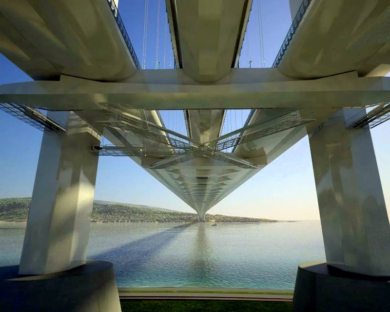 Most ma mieć rozpiętość 3300 m między dwiema wieżami, a jest to prawie 60% więcej niż obecnie najdłuższy most wiszący, Çanakkale w Turcji o długości 2000 m pomiędzy przęsłami. Projekt zakłada budowę dwóch 60-metrowej szerokości przęseł, które utrzymywać będą cztery liny główne. Końce dwóch par lin zakotwiczone będą do wież po obu stronach cieśniny, a każda z wież o wysokości 399 metrów, czyli znacznie wyższe niż Wieża Eiffla. Szerokość toru wodnego ma wynieść 600 m, natomiast prześwit 65 m. co pozwoli na swobodny przepływ dużych jednostek morskich.