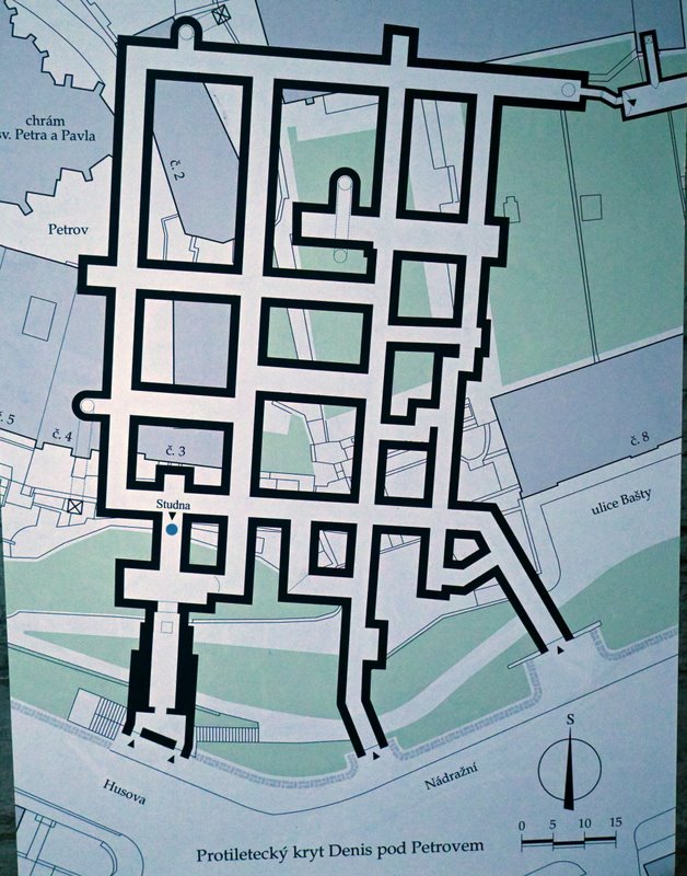 Specjalna wycieczka z przewodnikiem po schronisku Denis pod Petrovem oferuje, oprócz zwiedzania wykutego w skale samowystarczalnego energetycznie schronu, wiele informacji na temat ukrywania się w Brnie podczas wojny, zeznania świadków i pokaz ochrony chemicznej sprzęt. Czas trwania wycieczki 90 minut.