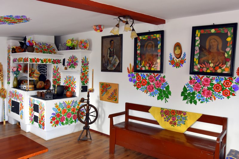 Słynie ze specyficznego sposobu zdobienia ścian budynków. Zwyczaj malowania domów w Zalipiu we wzory kwiatowe narodził się pod koniec XIX w., gdy zaczęto budować chaty z kominami. Wcześniej dym, który powinien wydostawać się przez otwór w powale, snuł się po niskich izbach, osmalając ściany, dlatego trzeba było często bielić je wapnem. Kiedy pojawiły się kominy, bielone połacie pozostawały przez długi czas jasne, więc gospodynie przyozdabiały je, malując na nich kwiaty.