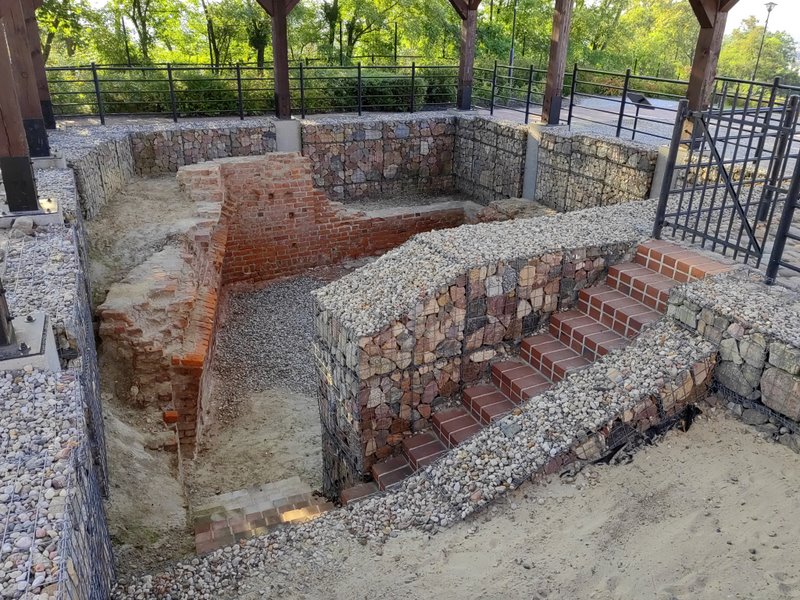 - Relikty piwnic skrzydła południowego, gdzie znajdowały się kaplica zamkowa i refektarz, a także fragmenty klatki schodowej, piwnic sklepowanych krzyżowo oraz brukowany dziedziniec.