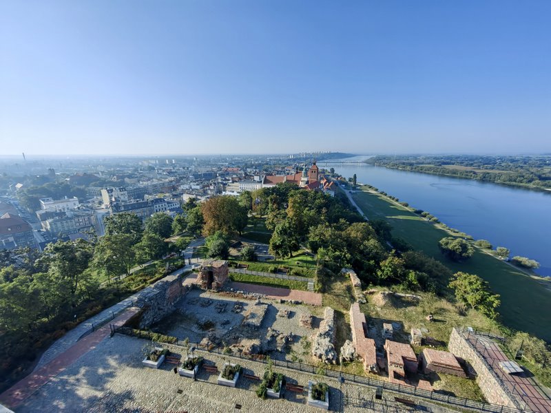 Skrzydło zachodnie, od strony Wisły, pełniło funkcje mieszkalne, a wschodnie gospodarcze, z kuchnią, browarem i piekarnią. W narożniku północno-zachodnim znajdowała się wieża „Klimek”, cylindryczna, o wysokości 30 metrów. Wejście do wieży prowadziło przez zwodzoną kładkę na wysokości połowy jej wysokości.