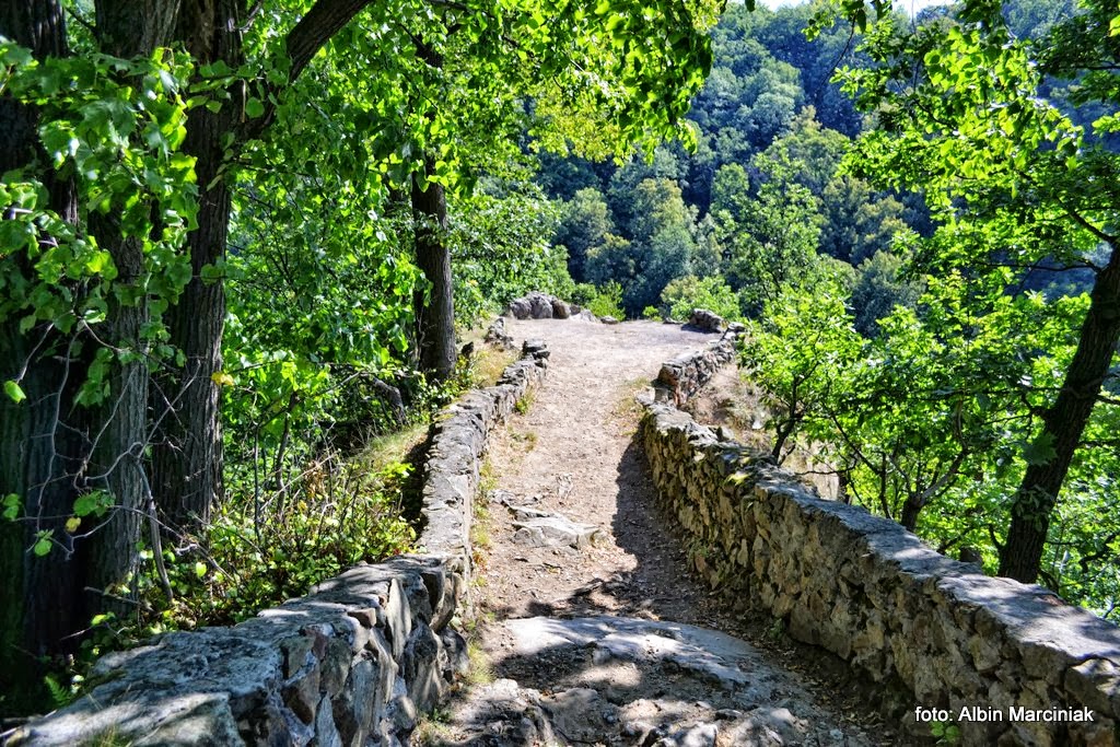 Wędrówkę w stronę ruin zamku możemy rozpocząć z punktu widokowego schodząc w dół z lewej strony barierek.