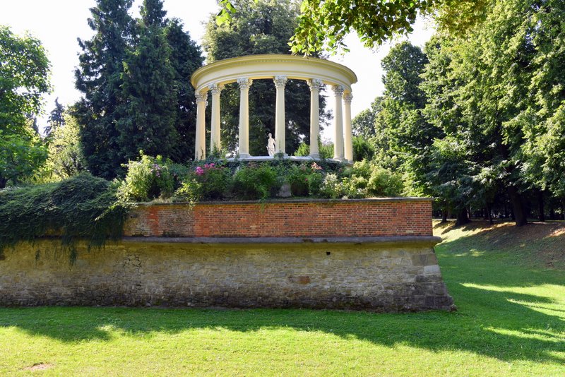 Najważniejsze zmiany wprowadzono w układzie i wyposażeniu zamku, dostosowując je do potrzeb i podporządkowując aktualnie panującej modzie. Pałac wypełnił się znakomitymi dziełami sztuki. W latach siedemdziesiątych XVIII w. rozpoczęto kształtowanie parku otaczającego Zamek Po zniwelowaniu przedwałów, usytuowanych wzdłuż drogi krytej obiegającej fosę, zasadzono lipy i w ten sposób utworzono aleję spacerową.