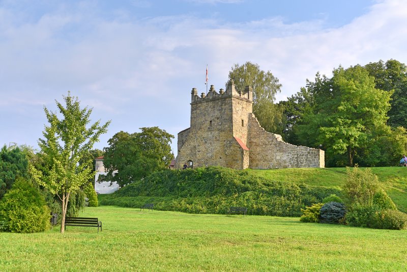 Zamek wzniesiony w latach 1350–1360. Do dzisiaj zachowały się resztki murów obwodowych oraz zrekonstruowana Baszta Kowalska. Obecnie na terenie ruin zamku znajduje się park miejski. Sukcesywnie prowadzone są prace archeologiczne, dające wiele cennych informacji a także wiele artefaktów zarówno z czasów istnienia zamku jak i z okresu II wojny światowej.